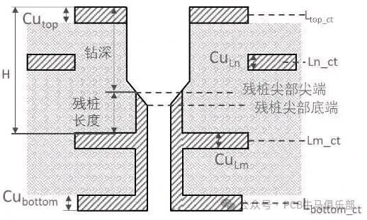 · 欠钻 (Under Drill):钻得不够深,残留stub过长,未能完全达到改善信号完整性的目的。