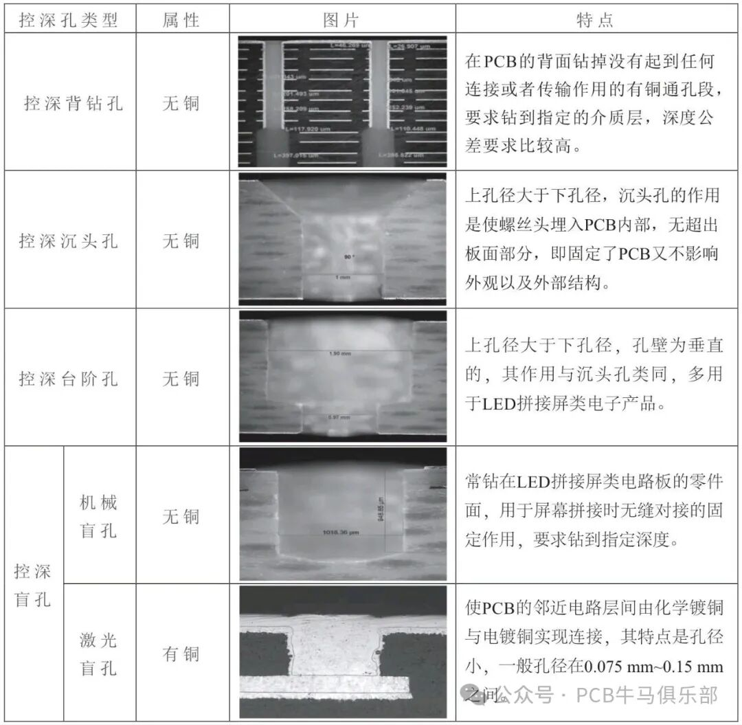 特别注意:有的工厂,利用机械钻刀钻出的控深盲孔,也被称为“背钻孔”,根据功能需要,可以做成PTH的(与激光盲孔功能一样),也可以是NPTH的,这类盲孔一般孔径比较大,直径在0.3mm_3.0mm之间,与激光盲孔的孔径有明显的区别,激光盲孔的孔径一般在0.075mm_0.3mm之间。